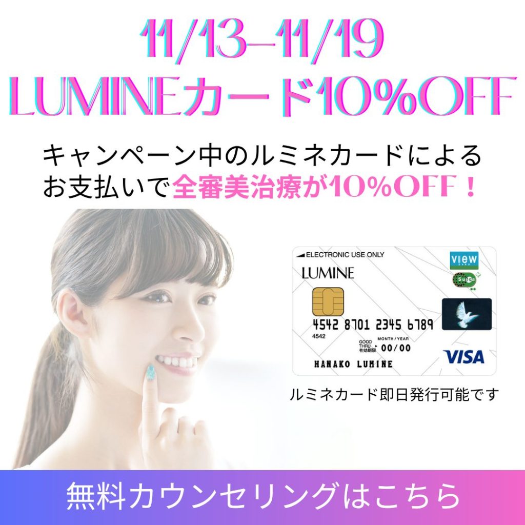 11/13-11/19の期間、ルミネカードによるお支払いで全ての審美治療が10%OFF!現在事前カウンセリング開催中です。